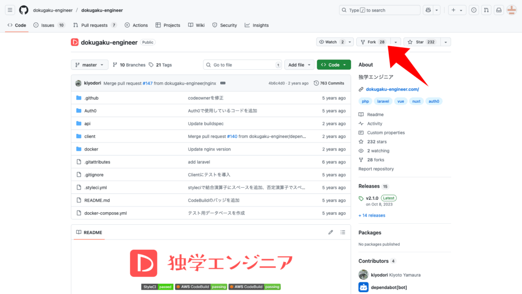 GitHubでフォークを行う 2025 8/06 広告 GitHub 2025年8月6日 GitHubでフォークを行うには、右上にあるForkボタンをクリックします。 Repository nameを決めて、Create forkボタンをクリックします。 フォークが開始されるので待ちます。 自身のレポジトリにプロジェクトがフォークされます。 GitHub 関連記事関連する記事はまだ見つかりませんでした。